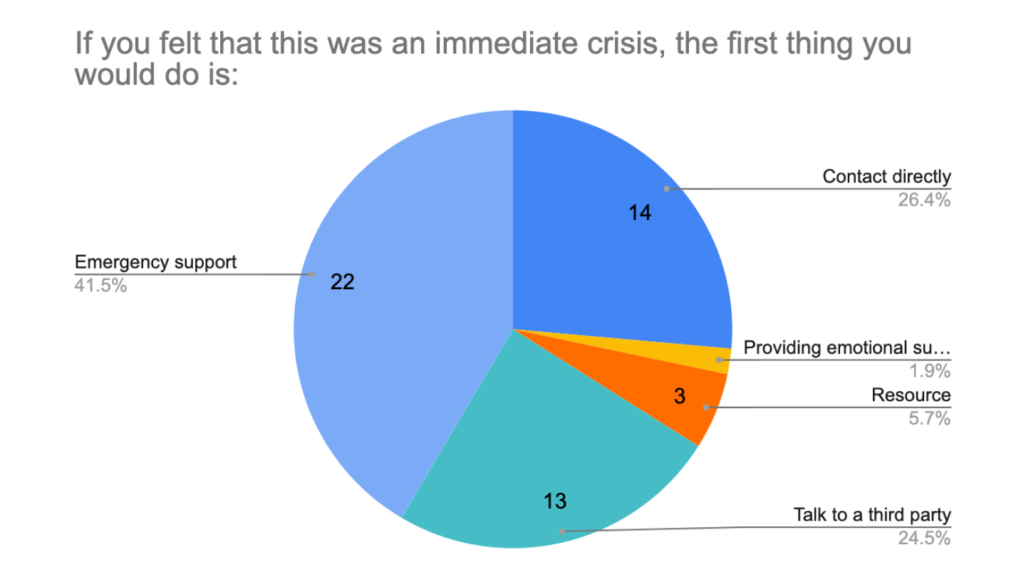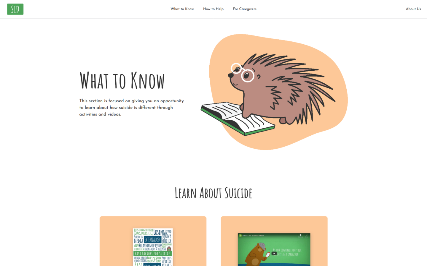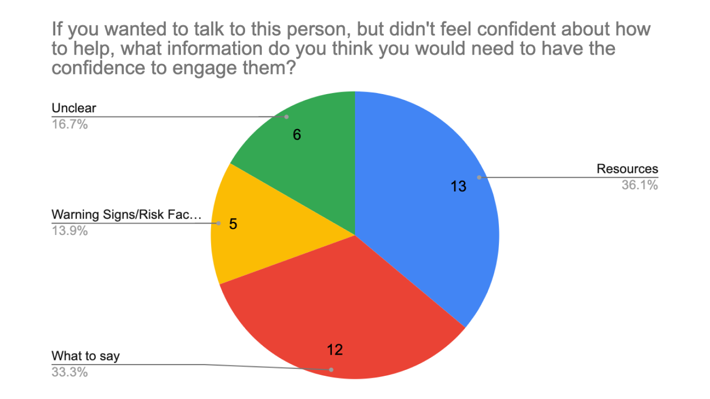 The original intent was to display suicide information in a 5 module sequence. Users would learn how to provide long-term support to people considering suicide.